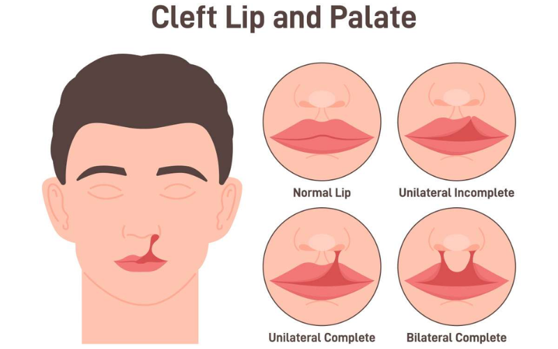 • Cleft Palate: A gap or opening in the roof of the mouth (palate), which may affect the front, back, or both sections.